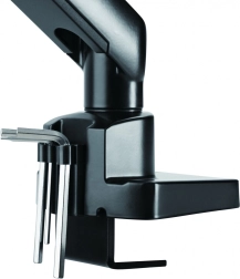 Suportul poate fi atașat pe birou folosind o bază cu clemă, economisind spațiu. Alternativ, poate fi montat direct prin orificiul biroului.