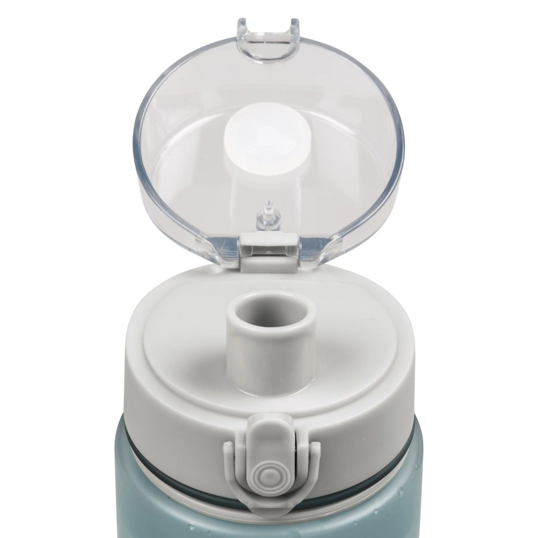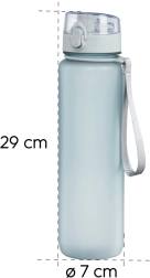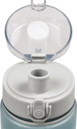 Deschiderea simplă cu un singur buton este deosebit de utilă la mersul pe bicicletă sau în timpul antrenamentului. Gâtul larg permite adăugarea de gheață sau fructe, iar gura de băut mare asigură confort la consum. Etanșarea din silicon previne în mod fiabil scurgerile nedorite în geantă sau rucsac.