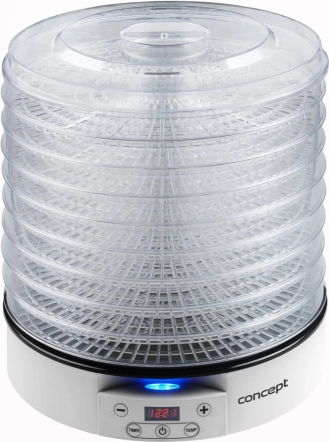 Descoperiți magia uscătorului Concept SO2020 și pregătiți-vă ingredientele preferate acasă simplu și eficient. Uscătorul este echipat cu un afișaj LED practic, cu ajutorul căruia setați atât timpul, cât și temperatura de uscare. Capacitatea uscătorului este ideală pentru uscarea fructelor, legumelor, ciupercilor, plantelor și multe altele. Cu motorul său puternic de 500 W, alimentele se vor usca mai repede decât credeți.