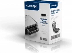 Sandwich maker-ul Concept FAMILY 3v1 vă ajută să pregătiți mic dejunuri, prânzuri, gustări și cine. Datorită celor trei plăci interschimbabile, aparatul este versatil și ideal pentru familii, deoarece permite pregătirea a patru toasturi odată. Acest ajutor spiralat garantează o pregătire rapidă și simplă a mesei.