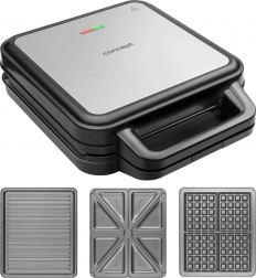 Oferă plăci interschimbabile pentru pregătirea sandwich-urilor, vafelor și preparatelor la grătar.