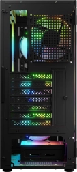 O carcasă de gaming trebuie să arate bine. De aceea, ventilatoarele ARGB preinstalate oferă carcasei și întregului ansamblu un aspect atrăgător. Culoarea iluminării poate fi schimbată liber, din setările predefinite, folosind butonul RESET de pe panoul de control al carcasei.