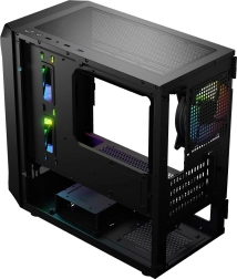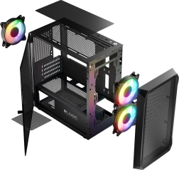 Panourile frontal și superior ventilate facilitează semnificativ circulația aerului. Două ventilatoare de 120 mm în partea frontală și un ventilator de 120 mm în spate răcesc eficient componentele fierbinți. Totul pentru confortul tău și siguranța PC-ului tău.