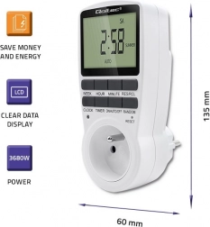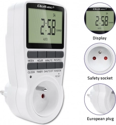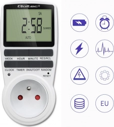 Automatizează funcționarea lămpilor, acvariilor, încărcătoarelor, ventilatoarelor sau fierbătoarelor și reduce consumul inutil. Datorită LCD-ului clar și butoanelor intuitive, setezi cu ușurință ziua, ora și minutul. Temporizatorul Qoltec oferă și comutare aleatorie, care simulează fidel prezența în locuință și crește siguranța.