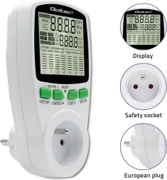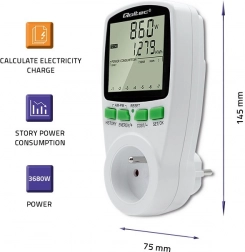 Clarificați care dispozitive sunt cei mai mari „consumatori” de energie. Qoltec PM0627 oferă măsurare precisă fără estimări, astfel încât puteți calcula fiabil costurile și evalua eficiența economiilor. Datorită LCD‑ului cu iluminare verificați ușor puterea actuală, totalul kWh, timpul și costul conform tarifului introdus.
