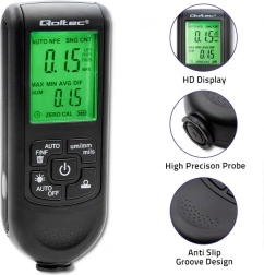 Grosimetru digital profesional pentru straturi care permite determinarea precisă dacă o piesă a fost revopsită sau reparată, dezvăluind astfel intervențiile ascunse. Potrivit pentru substraturi din oțel (F) și metale neferoase (NFE), cu selectare automată a modului. Ecranul iluminat asigură lizibilitate impecabilă și în condiții de lumină slabă.