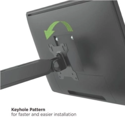 Suportul este compatibil cu monitoare de 17–32" și greutate de până la 10 kg, oferind înclinare liberă, bază rotativă și rotație pentru o vizualizare perfectă din orice unghi. Managementul cablurilor păstrează blatul de lucru ordonat, iar sistemul cu gaură cheie accelerează semnificativ montajul.