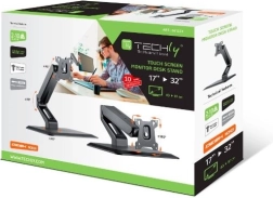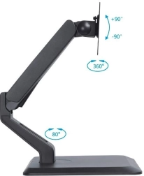 Suport de birou ergonomic pentru monitor, cu arc pe gaz, pentru diagonale 17–32" și capacitate de până la 10 kg, oferă reglare lină pe înălțime, posibilități ample de înclinare și rotire și o bază stabilă. Ideal pentru monitoare tactile – asigură poziționare confortabilă, management curat al cablurilor și instalare rapidă datorită orificiului tip „gaură cheie” pe prinderea VESA.