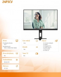 Descoperiți performanța și flexibilitatea cu monitorul AOC 24P3CV. Acest monitor cu design modern dispune de un panou IPS de 23,8" care asigură imagini vii și clare. Numeroasele opțiuni de conectivitate, inclusiv HDMI, DP și USB-C, asigură compatibilitatea cu toate dispozitivele dvs.
