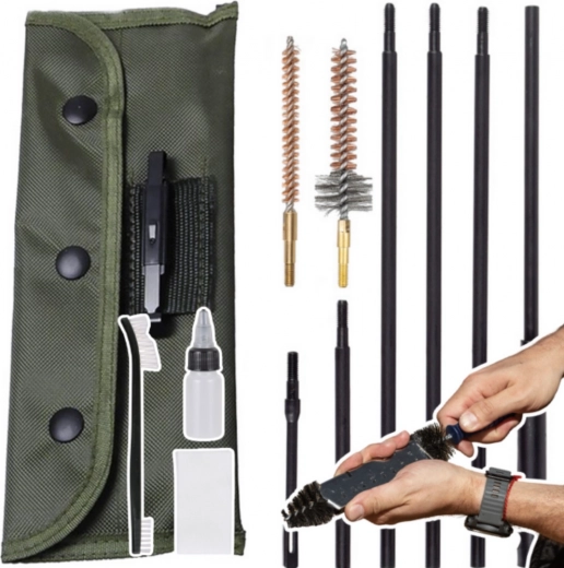 Este alcătuit dintr-o tijă cu 6 segmente înșurubabile, cu lungime maximă de 83 cm, realizată din oțel brunat pentru durată mare de viață și rezistență la uzură. Setul include perii din alamă pentru curățarea țevii și a camerei cartușului, care îndepărtează eficient murdăria fără a deteriora suprafețele din oțel. De asemenea, conține o perie din plastic cu densități diferite ale perilor, ideală pentru curățarea zonelor greu accesibile, cum ar fi camerele închizătorului. Mânerul rotativ în formă de T facilitează manevrarea tijei și asigură o curățare precisă a interiorului țevii. Setul include și un vârf pentru aplicarea și ștergerea peticelor, precum și o perie manuală din nailon cu două capete, ideală pentru întreținerea componentelor sensibile ale armei.