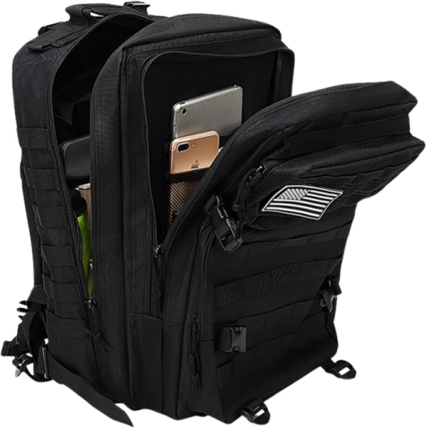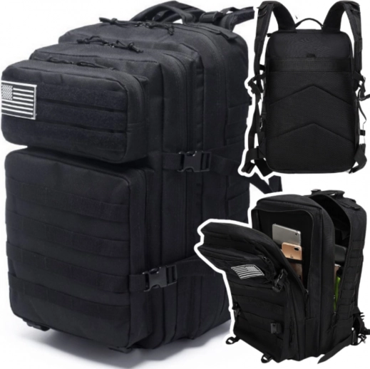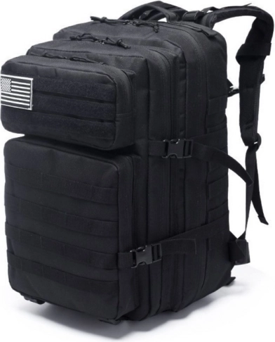 Rucsac tactic 40–60 l universal, în culoarea neagră, pentru drumeții, ture și purtare zilnică. Oferă poliester rezistent, sistem de purtare ergonomic, ventilație a spatelui și sistem modular MOLLE pentru extinderea capacității. Datorită curelelor de compresie, construcției rezistente la apă și compartimentării interne inteligente vei transporta în siguranță tot ce ai nevoie.