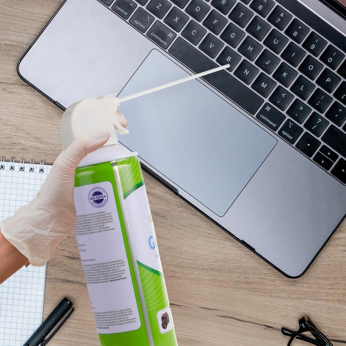 Aerul comprimat GREENBLUE, la cutie de 400 ml, este ideal pentru întreținerea regulată a electronicelor sensibile. Datorită duzei capilare subțiri, direcționați jetul de aer exact acolo unde este nevoie și îndepărtați cu ușurință praful, firimiturile sau scamele din fante înguste și colțuri.