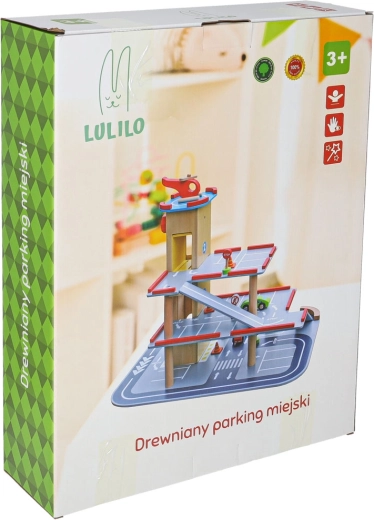 Descoperă parcarea din lemn pe mai multe etaje LULILO Benino, cu lift manual, rampe și heliport. Include 2 mașinuțe, elicopter, indicatoare și conuri și pompă de combustibil – totul pentru un joc creativ și sigur.