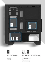 Această carcasă oferă maximum de spațiu pentru discurile HDD și SSD, suportând până la 156 mm înălțime pentru coolerele de procesoare și plăci grafice de până la 330 mm lungime. Răcirea frontală și spate cu posibilitatea instalării a până la 8 ventilatoare asigură un flux de aer excelent, maximizând performanța și protecția componentelor calculatorului dumneavoastră.