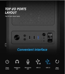 Nu lipsesc elementele practice precum panoul superior cu conectori, filtrele de praf magnetice și filtrul de praf inferior. Datorită secțiunii speciale pentru sursa de alimentare, este asigurată o gestionare eficientă a spațiului și răcirii.