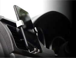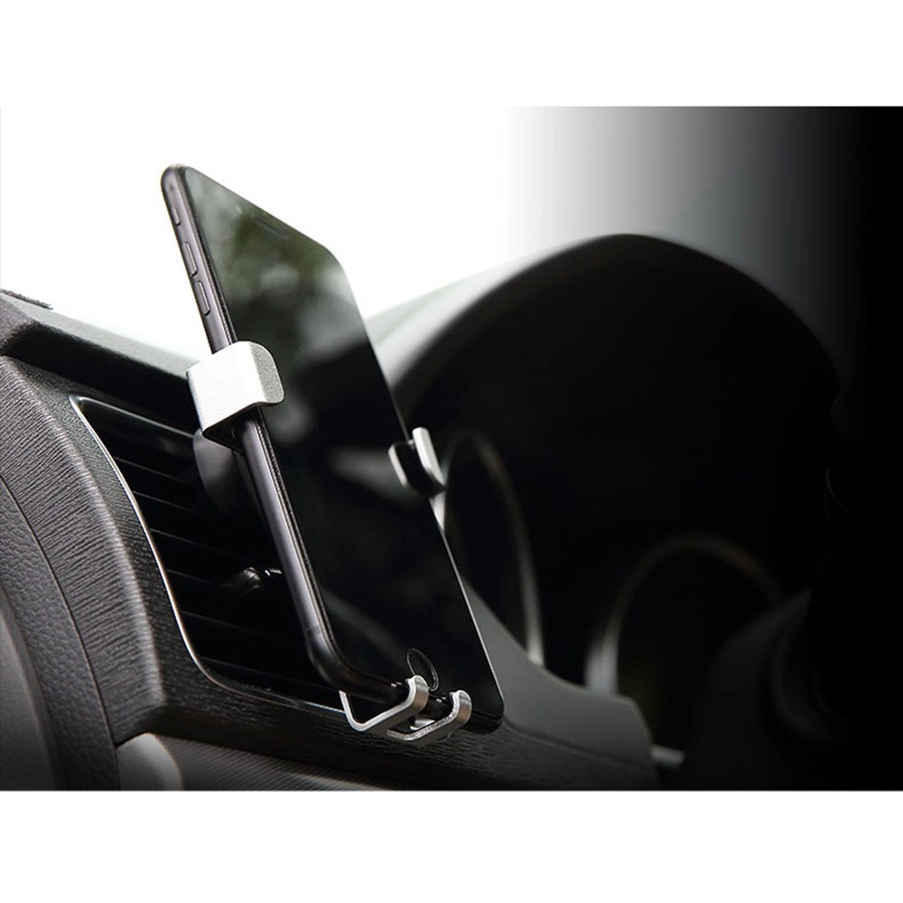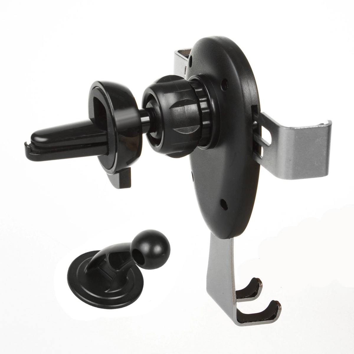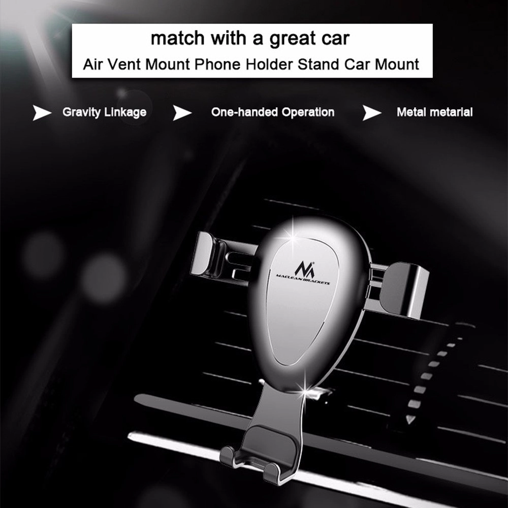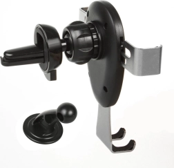 Suport auto gravitațional pentru dispozitive mobile, care se fixează pe grila de ventilație sau pe parbriz. Este suficient să așezi telefonul sau smartphone-ul în suport, iar fălcile se închid automat. Este echipat cu un cap rotativ care permite poziționarea telefonului în orice unghi. În pachet este inclus și un stativ care permite montarea, de exemplu, pe bord.