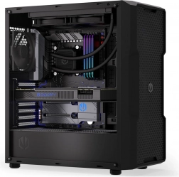 Endorfy Navis F240, dezvoltat în colaborare cu Synergy Cooling, este un sistem de răcire silențios și eficient, ideal pentru gamerii exigenți. Inima acestuia este o pompă bloc cu rulmenți ceramici și control PWM, conectată la un radiator de 240 mm cu două ventilatoare Fluctus 120 PWM preinstalate. Aceste ventilatoare cu un design aerodinamic inovator oferă un flux de aer optim prin cooler.