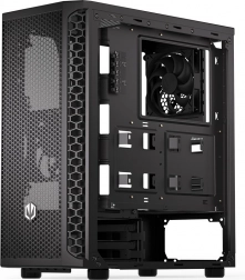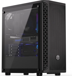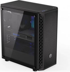 Carcasa Signum 300 Core utilizează un panou frontal cu grilaj de ventilație pentru a răci eficient componentele tale, ceea ce este esențial pentru sarcini de lucru intense sau gaming.