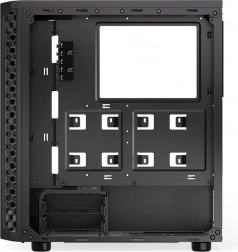 Panoul de sticlă dezvăluie frumusețea estetică a componentelor interne și oferă o oportunitate perfectă pentru prezentarea iluminarii ARGB. De asemenea, oferă opțiuni de montare pentru patru discuri de 2,5 inci sau o combinație de două discuri de 2,5 inci și două de 3,5 inci.