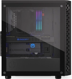 Panoul lateral din sticlă securizată oferă o vedere asupra componentelor tale iluminate, conferind un aspect modern și sofisticat sistemului tău.