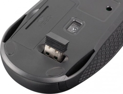 Comunicarea wireless la frecvența de 2.4GHz permite utilizarea confortabilă până la o distanță de 10 metri și mouse-ul are un compartiment special pentru receptorul USB, care este convenabil pentru călătorii.