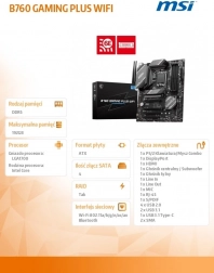 Placa de bază MSI B760 Gaming Plus Wifi oferă o gamă completă de caracteristici care maximizează performanțele de joc și stabilitatea sistemului. Construcția sa robustă include sistem de alimentare Duet Rail 12+1, întărirea sistemului CPU și memorie, asigurând cea mai bună utilizare posibilă a componentelor dumneavoastră.