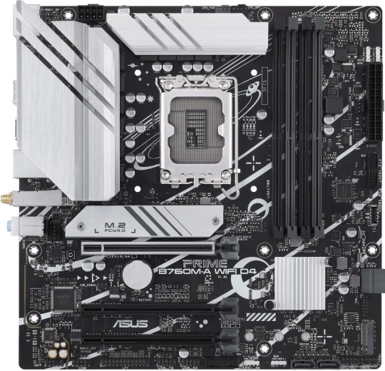 ASUS PRIME B760M‑A WIFI D4 este o placă de bază versatilă în format mATX pentru socket LGA 1700, pregătită pentru procesoare Intel Core din generațiile a 12‑a și a 13‑a. Oferă un echilibru între performanță, conectivitate și stabilitate, cu suport pentru SSD‑uri rapide prin două sloturi M.2 și plăci grafice pe interfața PCIe 4.0.