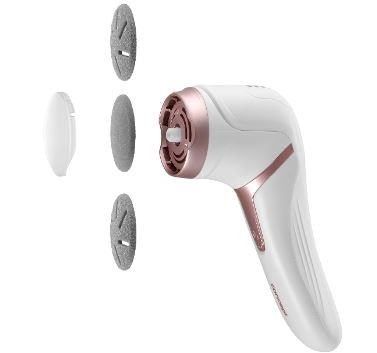 Pilonul electric pentru călcâie Concept PN3000 vine cu 3 discuri interschimbabile pentru diferite tipuri de tratament. Discul fin este potrivit pentru zone sensibile, discul mediu este ideal pentru utilizare zilnică, iar discul grosier pentru piele uscată și îngroșată. Orificiile din interiorul accesoriilor servesc la aspirarea pielii îndepărtate.