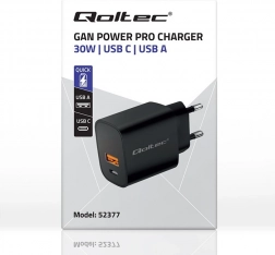 Încărcătorul Qoltec GaN Power Pro utilizează tehnologia avansată GaN, ceea ce înseamnă încărcare foarte eficientă și rapidă cu un consum redus de energie. Datorită capacității de a se adapta la diferite tipuri de dispozitive, protejează bateriile și previne supraîncălzirea.