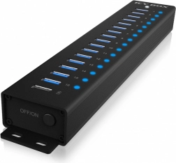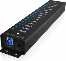 ICY BOX IB-HUB1717 este un hub USB puternic cu 17 porturi, conceput pentru stații de lucru, servere, ateliere și studiouri. Oferă 16 porturi USB 3.2 Gen 1 Type‑A pentru transfer de date de până la 5 Gb/s pe fiecare port și un port USB‑A dedicat pentru încărcarea rapidă a dispozitivelor mobile. Șasiul integral metalic din aluminiu asigură fiabilitate și disipare eficientă a căldurii chiar și în condiții solicitante.