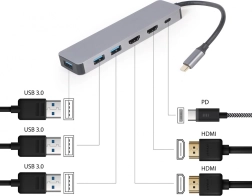 Adaptor USB-C Hub USB-C PD HDMI x2 USB 3.0x3