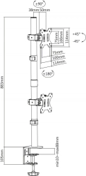 Suport birou universal permite montarea verticală a două monitoare suprapuse, potrivit pentru ecrane de până la 32 inch și greutate max. 8 kg.