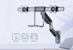 Acest suport de perete permite localizarea ușoară și ergonomic pentru a reduce efortul fizic. Suportul pentru două monitoare oferă flexibilitatea de a roti, extinde și înclina brațele pentru a se potrivi nevoilor dumneavoastră. Ecranele pot fi rotite din poziția orizontală în cea verticală, facilitând citirea și îmbunătățind confortul la locul de muncă.