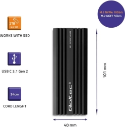 Husa pentru M.2 SSD marca Qoltec este concepută pentru a fi extrem de compatibilă cu diverse tipuri de SSD-uri, inclusiv NVMe și SATA. Este destinată pentru discuri cu M-Key și B+M-Key de dimensiuni 2230, 2242, 2260 și 2280.