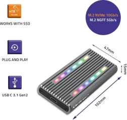 Protecție elegantă și robustă pentru datele dvs. valoroase. Carcasa din aluminiu de calitate ajută la disiparea căldurii și designul cu LED RGB permite schimbarea culorilor după necesitate. Designul compact permite transportul ușor și protecția împotriva deteriorării este garantată.