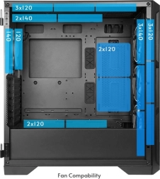 Șasiul este spațios și oferă suport pentru GPU de până la 400 mm lungime, coolere pentru procesor de până la 175 mm înălțime și suport pentru radiatoare de până la 360 mm sus și până la 420 mm în față.