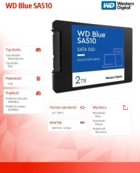 WD Blue SA510 este un SSD SATA modern, conceput pentru creatori, profesioniști și utilizatori exigenți care doresc să accelereze pornirea sistemului, lucrul cu proiecte și productivitatea zilnică. Datorită vitezei de citire de până la 560 MB/s și latenței reduse, grăbește semnificativ încărcarea aplicațiilor și lucrul cu fișiere mari. Consumul redus de energie prelungește autonomia laptopului între încărcări, iar funcționarea fără piese mecanice elimină vibrațiile și reduce riscul de pierdere a datelor în caz de cădere.