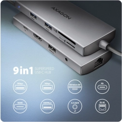 Extindeți-vă laptopul, computerul sau telefonul cu nouă porturi într-un singur corp compact. Acest hub USB‑C universal oferă 3× USB‑A, HDMI până la 4K/60 Hz, Gigabit Ethernet, jack audio combinat de 3,5 mm, cititor SD/microSD și trecere USB‑C Power Delivery 100 W. Eleganța și durabilitatea sunt asigurate de șasiul din aluminiu, conectarea este ușoară datorită Plug & Play și Hot Plug.