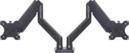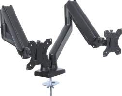 Suport dublu pentru monitor permite ajustarea ușoară și fluidă cu ajutorul unui resort cu gaz, asigurând ergonomie optimă și confort în timpul lucrului.