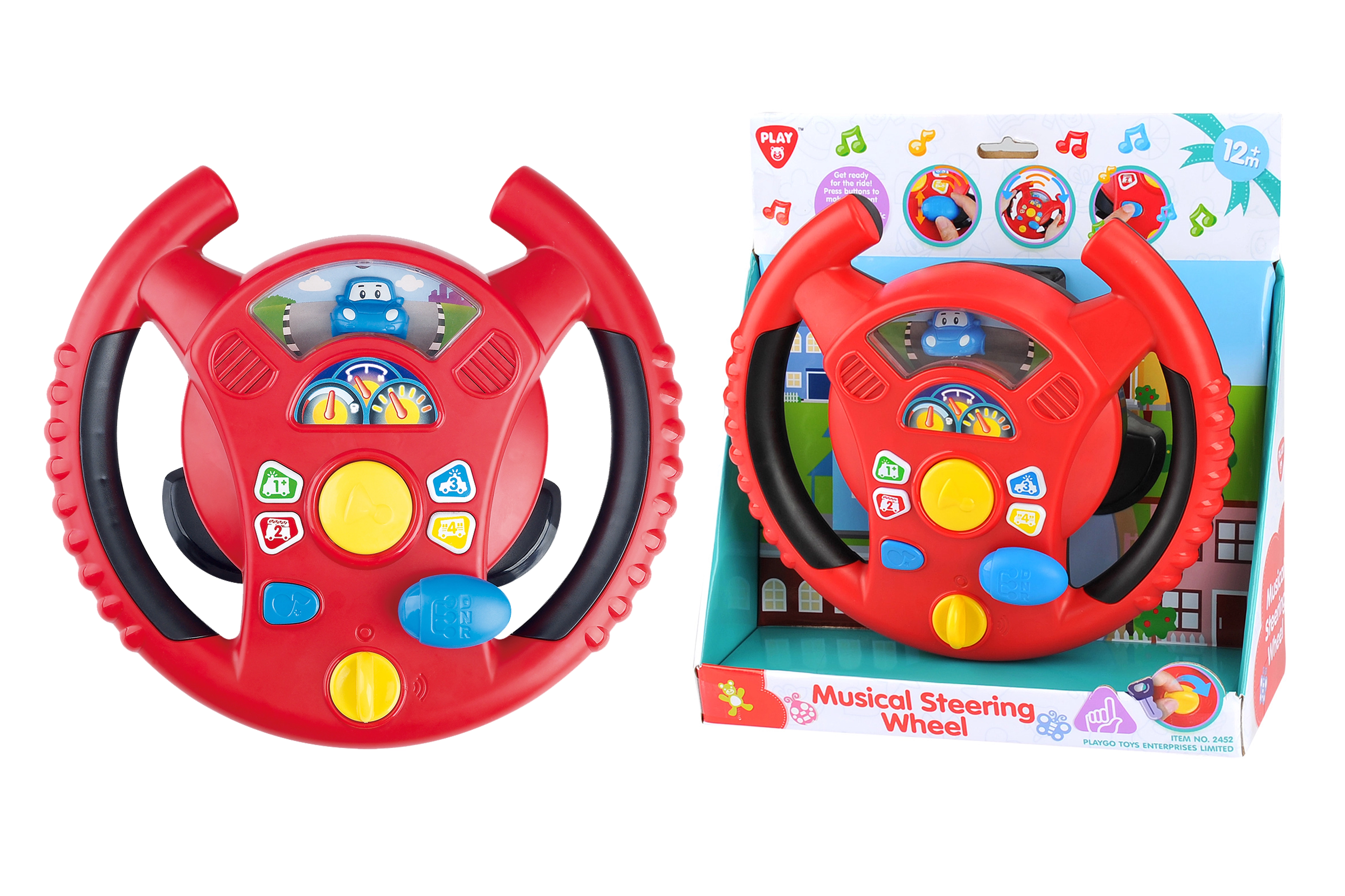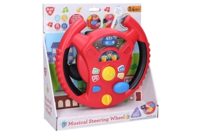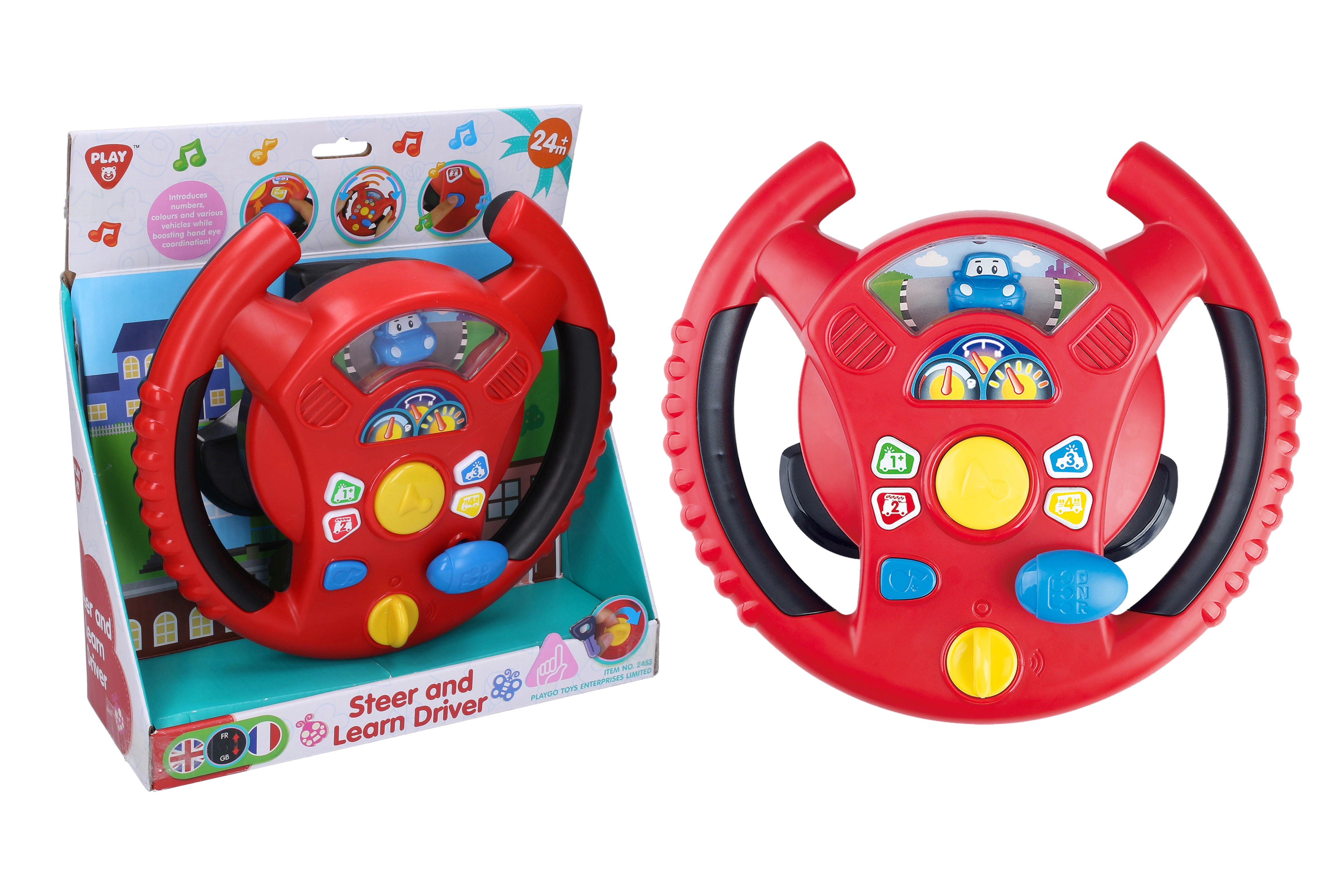 Volanul interactiv Playgo aduce copiilor un joc distractiv de condus într-un mini oraș. Comutatorul rotativ de pe partea inferioară a volanului servește pentru pornire, în centru se află claxonul, în dreapta maneta de schimbare pentru sunetele de mers, iar pe coroana volanului mici butoane cu tonuri și melodii. Copiii se vor bucura de efecte realiste, care amintesc de o mașină adevărată, dezvoltând în același timp coordonarea și imaginația.
