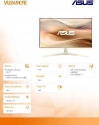 ASUS VU249CFE-M combină rame subțiri, culori precise ale tehnologiei IPS și fluiditatea 100 Hz pentru utilizare confortabilă zi de zi. Datorită portului USB‑C, transferați imagine, date și alimentare printr-un singur cablu, menținând spațiul de lucru curat și ordonat.