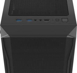 - Conectivitate bogată pe panoul superior: 2× USB 3.0, 1× USB 2.0, HD Audio, butoane Power/Reset