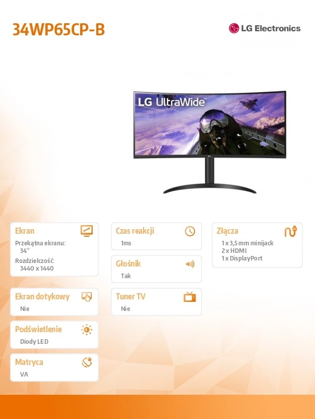 LG 34WP65CP-B oferă o suprafață de lucru largă UltraWide QHD (3440 × 1440) cu curbură pentru un câmp vizual natural. Lățimea mai mare a ecranului facilitează lucrul în mai multe ferestre simultan, editarea video și gestionarea foilor de calcul. Suportul HDR10 asigură culori mai vii și un interval dinamic îmbunătățit pentru filme, jocuri și proiecte creative.