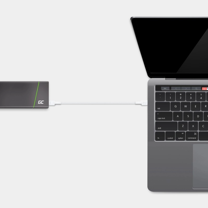 Cablu alb USB-C tip C 30 cm Green Cell PowerStream, Power Delivery 60W, Quick Charge 3.0