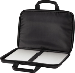 Această geantă neagră pentru laptop de 14,1″ îmbină un aspect elegant cu funcționalitate bine gândită. Construcția durabilă îți protejează laptopul împotriva zgârieturilor și murdăriei, iar banda elastică internă cu arici îl menține în siguranță pe poziție chiar și în timpul deplasărilor.
