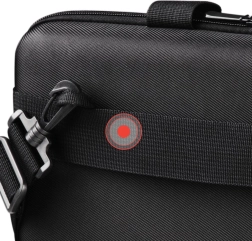 Pentru o organizare ușoară, pe partea din față se află un buzunar spațios pentru încărcător, mouse, documente sau obiecte personale mici. Datorită curelei din spate, geanta se fixează ușor pe mânerul telescopic al trolerului, lucru deosebit de util în călătoriile de serviciu.