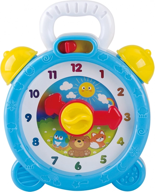Ceasul de jucărie este perfect pentru cei mici. După ce este întors cu ajutorul centrului galben, ceasul începe să cânte melodii iar fundalul colorat se va mișca. De asemenea, limbile ceasului pot fi mutate manual pentru interacțiune sporită.