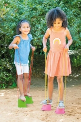 Acest set de trepiede colorate din plastic este o alegere excelentă pentru joaca activă a copiilor. Baza stabilă „tip pahar” și șnururile rezistente îi ajută pe copii să își antreneze în siguranță echilibrul și încrederea în mișcare. Trepiedele sunt ușoare, durabile și ușor de transportat – ambalate într-o plasă practică.