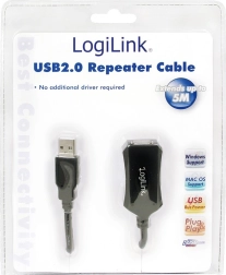 Cablu prelungitor USB 2.0 practic, cu lungimea de 5 m, pentru conectarea fiabilă a dispozitivelor. Oferă viteză de transfer de până la 480 Mb/s, ecranare dublă pentru minimizarea interferențelor și conectori USB-A tată – USB-A mamă. Cu utilizarea unui repetor se poate atinge o lungime de până la 20 m fără pierderi de calitate a semnalului.
