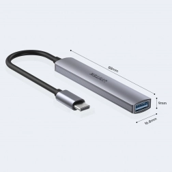 Dispozitivul funcționează fără instalare – doar conectați la USB‑C și puteți lucra. Corpul metalic este durabil și elegant, iar dimensiunile compacte (aprox. 8,8 × 1,6 × 0,8 cm) încap în orice geantă. Hubul extinde conectivitatea nu doar la computer, ci și la tabletă și smartphone, unde creați cu ușurință un spațiu de lucru portabil.